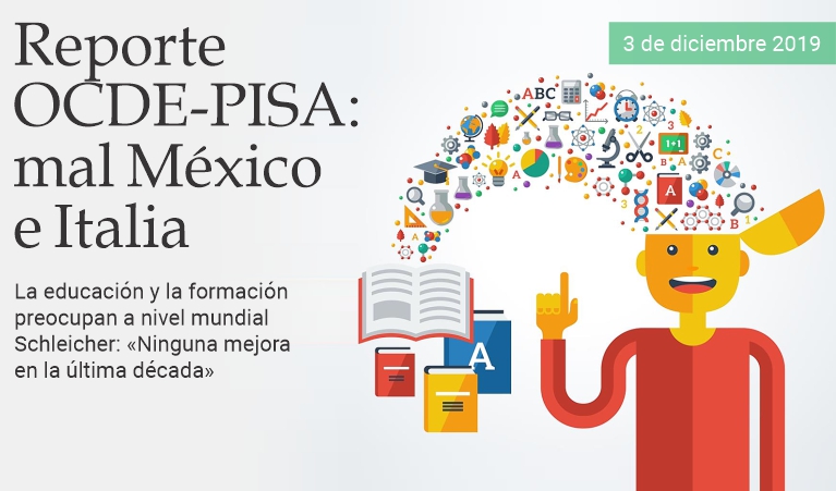 | 3 de diciembre de 2019 - Según los resultados de los exámenes aplicados en 2018 en el contexto del Programa para la Evaluación Internacional de los Alumnos de la OCDE (PISA), dados a conocer hace algunas horas, los estudiantes de México obtuvieron el último lugar en la lista de los 36 países miembros de esa organización internacional, mientras que los italianos se colocaron en el sitio 25. La prueba se llevó a cabo con alumnos de 77 naciones (en la tabla general, Italia es 32ª y México 53º) entre las cuales los jóvenes chinos de los municipios de Pekín y Shangái y de las provincias Jiangsu y Zhejiang obtuvieron el puntaje más alto. Los resultados en Italia fueron más bajos que el promedio de la OCDE en lectura y ciencias y similares al promedio en matemáticas. El rendimiento del Bel Paese disminuyó, después de 2012, en lectura y ciencias, mientras se mantuvo estable (y por encima del nivel observado en 2003 y 2006) en matemáticas. Los resultados en lectura disminuyeron particularmente entre las niñas (y se mantuvo estable entre los niños). Las calificaciones en ciencias disminuyeron más marcadamente entre los estudiantes con logros más altos, de manera similar tanto para niños como para niñas. Los estudiantes mexicanos obtuvieron un puntaje inferior al promedio de la OCDE en las tres disciplinas. Sólo el 1% de los alumnos de este país latinoamericano alcanzó un desempeño alto (nivel 5 o 6) en al menos un área (el promedio de la OCDE es de 16%), y el 35% no obtuvo el nivel mínimo de competencia (nivel 2) en las 3 áreas (promedio OCDE:13%). El problema de la educación parece ser uno de los más preocupantes y difíciles de resolver a nivel mundial. En el video que acompaña la presentación de los resultados de la prueba PISA 2018, Andreas Schleicher, titular de la Dirección de Educación y Habilidades de la OCDE, comenta: «Más de 10 millones de estudiantes representados en la última evaluación global PISA no pudieron completar ni siquiera las tareas de lectura más básicas, las que requieren el tipo de habilidades que normalmente dominarías a los 10 años de edad, y sólo uno de cada diez estudiantes en el área de la OCDE fue capaz de distinguir entre hechos y opiniones, con base en información implícita, una tarea que no es fácil, pero que caracteriza el mundo digital que nos rodea. No ha habido mejoras reales en los resultados de aprendizaje de la última década».