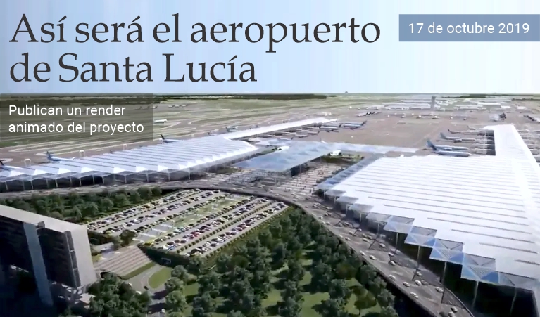 17 de octubre de 2019 - La Secretaría de la Defensa Nacional de México (SEDENA) difundió hoy una animación del proyecto del nuevo aeropuerto internacional de la capital del país, que se construirá donde actualmente se encuentra la base aérea militar de Santa Lucía sobre una superficie de 2 mil 320 hectáreas. En el video aparecen las instalaciones para los viajeros, las dos pistas y las vialidades aledañas a la terminal. El presidente Andrés Manuel López Obrador solicitó a la SEDENA concluir la obra en marzo de 2022.