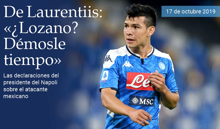 | 17 de octubre de 2019 - En una nota de Guillermo Abogado González publicada hoy por Notimex, se informa que el presidente del Napoli, Aurelio De Laurentiis, pidió paciencia para Hirving Lozano, consciente de que las actuaciones del “Chucky” no han sido regulares y que aún debe adaptarse. «Hay que darle tiempo para comprender cómo es el futbol italiano, Ancelotti sabrá cómo usarlo de la mejor manera», señaló De Laurentiis hablando del delantero mexicano. En lo que va de la campaña, Lozano ha acumulado 253 minutos en el campeonato italiano de Serie A, repartidos en cinco partidos, tres como titular, y fue autor de una sola anotación en su debut contra Juventus. En Champions League cuenta con 159 minutos de juego en dos compromisos y en ambos integró el once inicial. Para este fin de semana, no está confirmada su participación contra Hellas Verona, ya que cumplió con un largo viaje para jugar con la selección mexicana en los encuentros ante Bermudas y Panamá y, además, salió lesionado del último partido. (massimo barzizza / puntodincontro.mx)