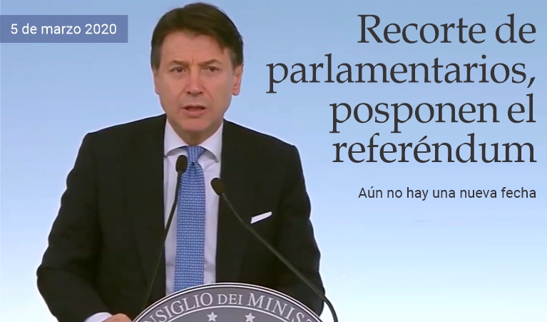 5 de marzo de 2020 (17:25 hrs.) - Luz verde del Consejo de Ministros de Italia para posponer el referéndum sobre el recorte de parlamentarios, programado para el 29 de marzo. El primer ministro Giuseppe Conte dijo: «Deliberamos posponer el referéndum constitucional [... que] estaba previsto a finales de mes. Ya estamos cerca y era necesario aclarar el punto. Evaluamos la posibilidad de posponerlo, todavía no hay una nueva fecha así que por el momento se trata de un aplazamiento sin fecha, sine die, como se dice técnicamente».