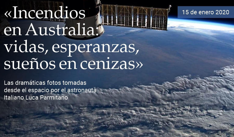 15 de enero de 2019 - Una densa capa de humo y cenizas que amenaza una reserva natural es una de las fotos más impresionantes de los incendios australianos tomadas en las últimas horas por Luca Parmitano, el astronauta italiano de la Agencia Espacial Europea (ESA) quien a bordo de la Estación Espacial Internacional (ISS) comenta con sus compañeros de la tripulación acerca de la extensión «aterradora» del desastre, como escribe el propio AstroLuca en Twitter.