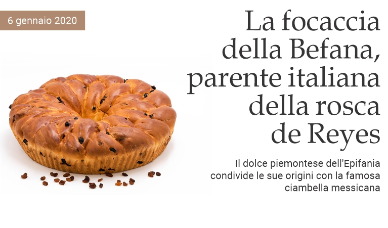 6 gennaio 2020 - La focaccia della Befana, fugassa d’la befana in dialetto piemontese, è un dolce tipico dell’Epifania diffuso soprattuto nell'area cuneese, racchiusa tra le Langhe, le Alpi Marittime e le Cozie. Data l'influenza francese sulla cultura di questa regione dell'Italia nord-occidentale, in particolare durante il periodo pre-rinascimentale, è probabile che la ricetta abbia le stesse origini medievali di quella che portò più tardi alla genesi della rosca de Reyes, oggi ampiamente utilizzata nelle celebrazioni messicane del 6 gennaio. Si tratta di una focaccia dolce arricchita con canditi che nasconde (come la rosca) una sorpresa. Ha una caratteristica forma che ricorda una margherita ed è fatta di pan brioche, preparato con latte, zucchero, burro, uova e vaniglia. La tradizione vuole che all’interno vengano nascoste una fava bianca e una fava nera. Colui che trova la fava bianca dovrà farsi carico delle spese della focaccia, chi trova invece la fava nera pagherà da bere a tutti. In alcune zone alle fave viene sostituito un piccolo re e il fortunato che troverà nella sua fetta la figura, sarà il re della giornata, anche questa una tradizione molto diffusa nella Francia del XV secolo. (massimo barzizza / puntodincontro.mx)