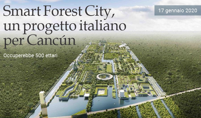 17 gennaio 2020 - Stefano Boeri, l'architetto italiano autore del Bosco verticale nel quartiere Isola di Milano —due grattacieli di 100 e 80 metri le cui facciate accolgono una biodiversità floristica di oltre 11.000 tra alberi, arbusti e essenze vegetali— sta esplorando un'espansione dello stesso concetto sotto forma di un intero centro urbano in Messico. Situato appena fuori da Cancún, questo ambiente tentacolare è concepito con cura, in modo che la natura si trovi in perfetta armonia tra aree verdi e architettura costruita. Il progetto Smart Forest City occuperebbe 500 ettari di terreno che erano stati precedentemente designati per un centro commerciale. Il nucleo è nel verde: 7,5 milioni di piante, ovvero 2,3 alberi per residente. Le 400 specie da piantare sono state attentamente selezionate dalla botanica e architetto paesaggista Laura Gatti, garantendo un mix ponderato di vita vegetale. Questi alberi, arbusti, cespugli e fiori non solo popoleranno parchi pubblici e giardini privati, ma funzioneranno come parte dei tetti verdi e delle facciate che renderanno la città efficiente dal punto di vista energetico.