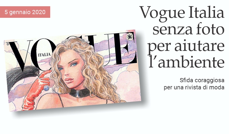 5 gennaio 2020 - Per la prima volta nella sua storia la rivista Vogue Italia rinuncia a utilizzare modelle e foto di abiti per dare spazio a disegni e illustrazioni di artisti noti, come Milo Manara, ed altri talenti, mettendo la creatività al servizio della sostenibilità in un numero speciale, in edicola il 7 gennaio. La cifra risparmiata verrà utilizzato per il restauro della Fondazione Querini Stampalia onlus di Venezia, danneggiata dalle recenti inondazioni. «Tutte le copertine e i servizi del numero di gennaio» —scrive il direttore Emanuele Farneti nell'editoriale— «sono stati realizzati da artisti, noti, emergenti, nomi dell'arte e leggende del fumetto, che hanno raccontato la moda rinunciando a viaggiare, spedire interi guardaroba, inquinare. La sfida è dimostrare che è possibile raccontare gli abiti senza fotografarli. È una prima volta: Vogue Italia non aveva mai avuto una copertina illustrata e nessun Vogue, da quando esiste la fotografia, ha mai realizzato un numero prescindendone. Grazie alla generosità di questi artisti, la cifra risparmiata nelle produzione di Vogue Italia di gennaio sarà devoluta a un progetto che ne ha realmente bisogno: il restauro della Fondazione Querini Stampalia onlus di Venezia, fortemente danneggiata dalla marea dello scorso novembre». L’unico servizio fotografico contenuto nel numero è stato realizzato da due fotografe di 17 anni ed è stato scelto perché «sono gli occhi del domani prestati al nostro presente». Farneti ha spiegato quanto sia dispendiosa, in termini di produzione, ogni edizione della rivista, paragonando il numero di settembre —che solitamente è il più corposo dell’anno— con quello che uscirà martedì prossimo: «Sono state coinvolte centocinquanta persone. Una ventina di voli, una decina di treni. Quaranta macchine a disposizione. Sessanta spedizioni internazionali. Almeno dieci ore di luci accese ininterrottamente, alimentate in parte da generatori a benzina. Scarti alimentari dei catering. Plastica per avvolgere gli abiti. Corrente per ricaricare telefoni, macchine fotografiche. Per questo numero invece gli abiti sono stati raccontati senza fotografarli, rinunciando a viaggiare, spedire, inquinare. Gli artisti hanno raffigurato visi e corpi di donne reali, vestite e truccate con l’aiuto di stylist (le persone che scelgono i vestiti delle modelle e l’ambientazione nei servizi di moda)». (massimo barzizza / puntodincontro.mx