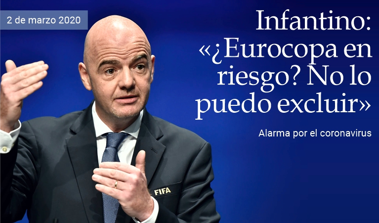 | 2 de marzo de 2020 (17:56 hrs.) - El presidente de la Federación Internacional de Futbol Asociación (FIFA), Gianni Infantino, concedió una entrevista a Sky Sports News sobre la alarma por el coronavirus que también pone en peligro el desarrollo de la Eurocopa el próximo verano: «No puedo descartar nada. No tenemos que entrar en pánico y personalmente no estoy preocupado, pero tenemos que examinar cuidadosamente la situación, evitando reacciones excesivas. Espero que no nos movamos hacia la cancelación de las competiciones, sería difícil emitir una prohibición general porque la situación en cada país es diferente. La salud de las personas es mucho más importante que cualquier partido de futbol. La salud está más allá de cualquier cosa y es por eso que debemos permanecer atentos y esperar que la epidemia no se propague». (massimo barzizza / puntodincontro.mx)