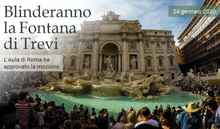 24 gennaio 2020 - Il Consiglio comunale di Roma —su mozione proposta da Andrea Coia (M5S)— ha approvato un provvedimento per la realizzazione, «secondo i requisiti tecnici forniti dalle soprintendenze», di una «barriera protettiva per la vasca della Fontana di Trevi che impedisca di sedersi sul suo bordo». L'atto prevede, inoltre, controlli della Polizia locale alle cinque vie di accesso a Fontana di Trevi per regolare e filtrare gli afflussi a scaglioni e un incremento dei pattugliamenti a piedi della Polizia locale. L'iniziativa mira, secondo Rai News, a «garantire una maggiore sicurezza e tutela dei beni culturali, ma anche a contrastare i fenomeni di abusivismo commerciale». (massimo barzizza / puntodincontro.mx)