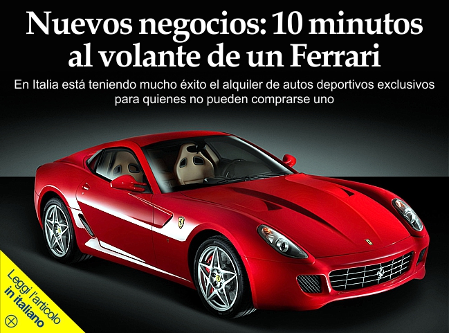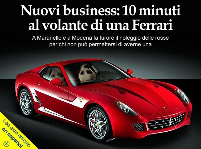 Sólo en Maranello hay cuatro, uno de los cuales, el Pitlane Red Passion, también tiene una sucursal en Módena. Llegan hasta un centenar de personas diarias, incluidos los domingos, para poner las manos sobre el volante de un modelo California o de un 459 Italia con el cual salen a dar una vuelta bajo la atenta mirada de un instructor sentado a su lado. Diez minutos al volante de un 430 Spider —aproximadamente 9 Km por las calles de Maranello— cuestan 70 euros, mientras que para pisar el acelerador de un Ferrari 599 se necesitan 150. Las reservaciones llegan por montones, especialmente desde el extranjero: América del Sur y Rusia ocupan por el momento los primeros lugares, pero van en aumento los clientes de la India y están empezando a aparecer los chinos. Los italianos, oprimidos por la crisis, representan sólo el 10% del total. La sirena del mito de Ferrari, sin embargo, parece irresistible para los brasileños o los rusos que, en ocasión de sus peregrinaciones en Maranello y Módena, compran el paquete completo: la visita a los museos de los autos, los gadgets de todo tipo en la tiendas de la marca y, por último, la vuelta en auto, uno de esos autos que, normalmente —a menos que usted pertenezca al círculo restringido descrito arriba— se ven sólo por televisión o en las manos de otras personas, brillantes e inalcanzables. Pero el sueño durará el espacio de unos pocos minutos, o una hora como máximo, antes de que el mágico vehiculo se aleje nuevamente y el conductor regrese a su acostumbrada calabaza. No siempre es así, sin embargo: en algunos casos los clientes ya poseen un coche similar y desean probar un modelo diferente. Ha sucedido con propietarios de autos Porsche, curiosos de comparar su vehículo con una de las criatura del Drake, o con personas que quieren probarlos antes de comprarlos, pero la gran mayoría de la clientela se compone de gente que puede gastar unos cuantos cientos de euros por una emoción. Hay muchos así, especialmente en el extranjero: personas irresistiblemente atraídas por esos autos rojos que, una vez terminada la experiencia, se bajan del Ferrari alquilado visiblemente emocionados.