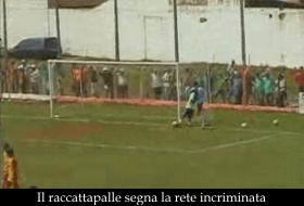 SAN PAOLO, 12 settembre 2006 - Il raccattapalle, invece di passare il pallone al portiere, lo calcia sottomisura e segna. Il guardalinee convalida, l'arbitro si dirige a centrocampo, un giocatore della squadra vittima della "svista" protesta e l'arbitro lo espelle. La squadra danneggiata a questo punto si lancia alla caccia del raccattapalle e del guardalinee, e la partita è sospesa.