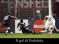 Mancini ha cercato di dar freschezza alla squadra con Gonzalez al posto di Figo. Poi sono entrati Adriano e Solari per Crespo e Stankovic. Ma è stato Pizarro a sfiorare il bersaglio di testa al 33'. Ma al 35', quando l'attaccante bavarese è stato servito da Van Bommel in area, vinto un contrasto con Grosso, è riuscito a toccare nella porta vuota con J.Cesar in uscita. Già l'Inter aveva stentato in undici, figuriamoci in dieci. E per soprammercato Grosso si è fatto espellere al 39' per un intervento su Sagnol e Cordoba, con un dissennato retropassaggio, ha regalato a Podolski che era entrato da poco, la palla da mettere alle spalle di Julio Cesar.