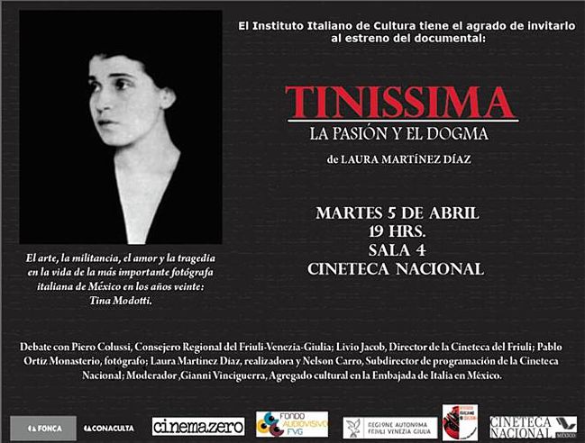 El Instituto Italiano de Cultura de la Ciudad de México ha organizado un evento en la Cineteca Nacional para presentar el documental Tinissima, la pasión y el dogma, de Laura Martínez Díaz. El evento está programado para el martes 5 de abril a las 19 horas.