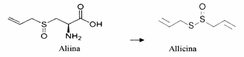 Nel caso dell’aglio la molecola maggiormente responsabile è l’Aliina, (solfossido della cisteina) ma non direttamente, poiché di per sé è completamente inodore e insapore.