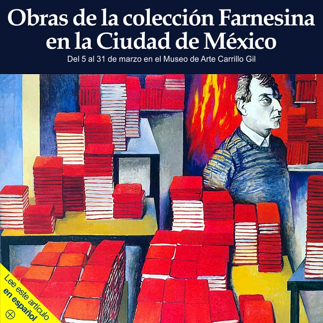 1 de marzo de 2013 - En el marco de la iniciativa Semana de las excelencias romanas y laciales en México (4-10 de marzo de 2013), se presentará en el Museo de Arte Carillo Gil una exposición basada en una selección de obras de la colección del Ministerio de Asuntos Exteriores de Italia. Dicha colección, que a lo largo de los años se ha venido articulando cada vez más, es testimonio de la toma de conciencia referente a la importancia del arte figurativo en el seno de la cultura contemporánea italiana y de su capacidad de ser un lenguaje adecuado para la comunicación y para el intercambio con otras culturas en un mundo cada vez más global.