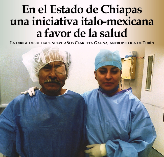 durante l'inaugurazione del Centro Oftalmologico di Huixtla. Le cause principali si possono individuare, considerando che si tratta di una zona molto povera, nella mancanza di alimentazione e di igiene, oltre al fatto che i contadini lavorano regolarmente sotto un sole cocente: durante l'anno la temperatura di questa zona oscilla tra i 36 e 43 °C. A queste cause si aggiunge la consanguineità, che è causa di gravi strabismi della popolazione infantile. Le altre patologie oculari a cui provvede l'organizzazione binazionale sono la cataratta e lo pterigio (più conosciuto come carnosità). Da parte italiana il capo equipe è il Professor Paolo Maria Pesando, piemontese docente a Parma. I medici messicani residenti a Tapachula —città che dista circa 50 km da Huixtla— sono i Dottori Gilberto e Fernando Rosales, quest'ultimo da pochi giorni nominato direttore del consultorio appena inaugurato. Oltre alle campagne oculistiche del Soconusco, nella zona conosciuta come Altos de Chiapas, da nove anni si svolgono campagne ginecologiche e urologiche realizzate da medici esclusivamente italiani provenienti dall'ospedale San Lazzaro di Alba sotto la direzione del Dott. Massimo Foglia. Si deve così all'Italia l'organizzazione —finora— di 25 campagne delle tre specialità (ginecologia, urologia, e oculistica), con un bilancio di più di mille pazienti operati e circa 3 mila visitati, ed un investimento superiore ai 400 mila euro, includendo l'acquisto di apparecchiature.