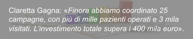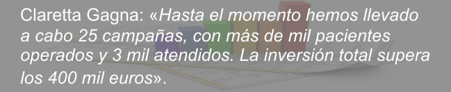 Bajo la coordinación de Claretta Gagna, un grupo de oftalmólogos provenientes de la región italiana de Piamonte, en colaboración con especialistas de México, han llevado a cabo regularmente campañas médicas gratuitas en apoyo a la población local. A partir de este año, gracias al nuevo centro que se acaba de abrir, la prestación de asistencia especializada se volverá continua. El gobierno de Chiapas acaba de contratar los servicios de un oftalmólogo que se encargará permanentemente de la clínica. Esta iniciativa se debe a la grave situación de una zona del estado de Chiapas (Soconusco), donde la ceguera es, por desgracia, un padecimiento muy extendido, sobre todo entre los pequeños productores de café.