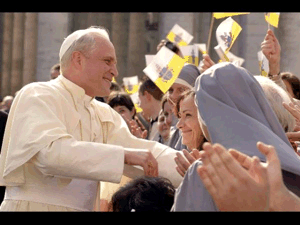 Il film alla prima italiana è stato accolto da due minuti di applausi, lacrime e clamore. "Nonostante non sia la prima volta che vedo il film curato da Giacomo Battiato, continuo ad emozionarmi per la storia di un uomo, quale Papa Wojtyla, piena di sofferenza", ha affermato Giovanni Modina, direttore di Canale 5, alla fine della proiezione del film. "Sono estremamente soddisfatto del lavoro svolto da tutti coloro che hanno preso parte alla realizzazione di un film non facile. Ciò che più mi dispiace è stata la contro programmazione che la Rai ha fatto rispetto alla data originaria della messa in onda, che andava a coincidere con l'appuntamento tra i due candidati premier. Per questo motivo e di fronte ad una figura come quella di Giovanni Paolo II, senza pensare ai dati di ascolto, abbiamo deciso di mandare in onda il film a maggio, una data non proprio ideale".