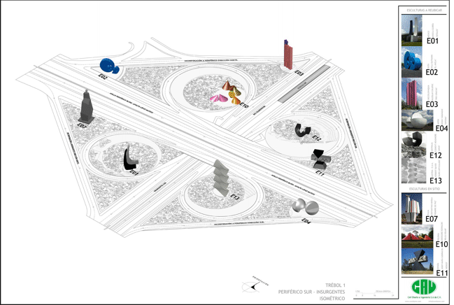 monumenti nello spazio attorno allo svincolo Periferico Sud-Insurgentes