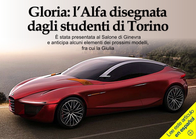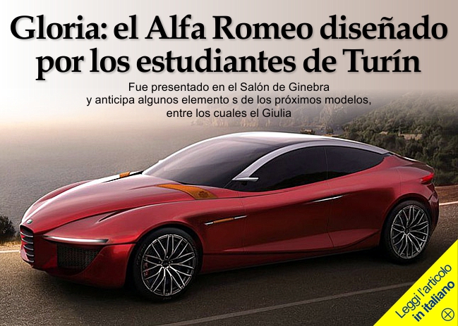 Alfa Romeo Coupé 4C «Le pedimos a los estudiantes de la Maestría que interpretaran en completa autonomía un nuevo sedán Alfa Romeo, explica Lorenzo Ramaciotti, Jefe de Diseño de Fiat y Chrysler. Durante el desarrollo comentamos, discutimos y direccionamos los proyectos con el fin de conseguir la expresión más espontánea de su creatividad. El resultado fue emocionante, muy profesional y creativo». Con poco menos de 5 metros de largo y casi 2 de ancho, el Alfa Gloria mide sólo 1 metro y 32 cm de altura, sus líneas son elegantes y limpias, los faros LED son muy delgados y es muy bella la cabina en forma de arco que se conecta con el segmento posterior muy corto. En su interior podría colocarse un motor V6 o V8 biturbo de última generación, como los que se utilizan para el nuevo Maserati Quattroporte. También hay referencias al pasado, cómo las tiras de cuero en el frente, que recuerdan a las correas que se utilizaban para detener los baúles. Eran otros tiempos. «Este concept car es el resultado de un proceso que simuló una situación real de trabajo: empezamos por el brief del Centro Alfa Romeo, en busca de estilo, a partir del cual se obtuvieron veinte propuestas desarrolladas en modelos de arcilla a escala 1:4. Entre todos los modelos, se seleccionó el que mejor correspondía al escrito inicial de la casa automotriz».