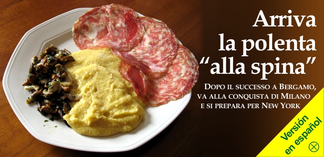 22 de agosto de 2012 - Harina de maíz y agua, nada podría ser más sencillo. Esta es la receta básica para hacer polenta, la comida más típica de los pobres que ha alimentado a generaciones de agricultores de la zona de Bérgamo, convirtiéndose en un símbolo de la cocina más rústica y popular. Pero también capaz de llegar con éxito a las mesas de los más ricos, muchas veces acompañada con guisados de carne o pollo. Casi siempre la gente se imagina a la polenta en una olla de cobre, con un cucharón de madera para revolverla, el fuego de la chimenea y una tabla de cortar sobre la que se verterá una vez que esté cocida. Tal vez por esto algunos tradicionalistas se sentirán ofendidos cuando se enteren de la existencia de PolentOne y de la asombrosa aventura de Marco Pirovano, un emprendedor de Bergamo que a lo largo de un par de años ha abierto una serie de tiendas de polenta para llevar en las zonas aledañas a su ciudad y a Brescia. Y que, a finales de septiembre, estará abriendo su primer restaurante en Milán, en pleno centro de la Ciudad de los Estudios.