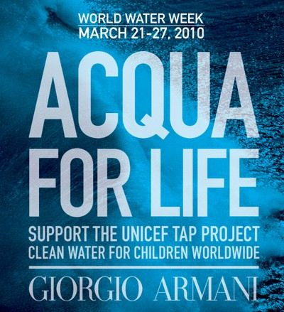14 febbraio 2011. - «Con il profumo si può portare l’acqua e un po’ di benessere ai bambini poverissimi», parola di Giorgio Armani, promotore di una singolare iniziativa. Dal primo marzo, lo stilista promuove l’accesso all’acqua potabile a chi normalmente non ne usufruisce e, insieme con Green Cross International cerca di avvicinare al tema l’opinione pubblica. Lo fa con i suoi profumi che già nei nomi portano la parola “acqua”.