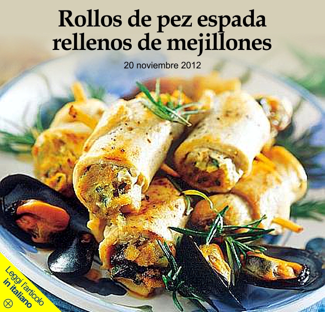 Extienda la mezcla sobre las rebanadas de pez espada, enróllelas y