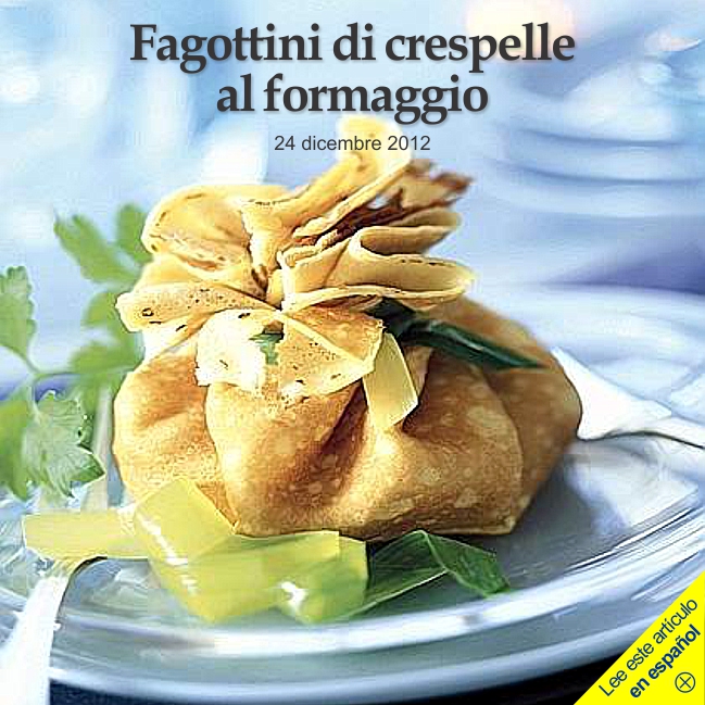 le crespelle a fagottino, legatele con un filo di erba cipollina, passatele