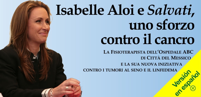 13 settembre 2012 - La fisioterapista Isabelle Aloi-Timeus —direttrice della clinica di riabilitazione fisica oncologia dell'Ospedale ABC-Observatorio di Città del Messico— si dedica già da tempo a impartire conferenze a gruppi di pazienti di ospedali pubblici per educarli sulla prevenzione del linfedema (un tipo di edema causato da un blocco dei canali linfatici, spesso associato con le coseguenze di interventi chirurgici) e sui metodi per ottenere una migliore qualità di vita durante e dopo il trattamento del cancro. La Dott.ssa Aloi ha fondato quest'anno Salvati AC, un'organizzazione dedicata alla raccolta di fondi per aiutare pazienti con difficoltà finanziarie ad accedere ai trattamenti di terapia fisica e di immagine, fornendo —inoltre— i materiali necessari ed il supporto psicologico necessario.