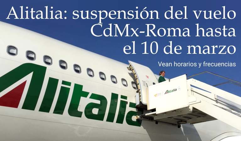 28 de diciembre de 2018 - Del 14 de enero al 9 de marzo del 2019, Alitalia suspenderá su vuelo directo entre Roma y la Ciudad de México. El servicio se reanudará a partir del domingo 10 de marzo con tres vuelos semanales —los martes, jueves y domingos— hasta el 3 de junio, fecha en que iniciará la frecuencia diaria que se mantendrá hasta el 30 de septiembre. Del 1 al 26 de octubre los vuelos se realizarán 5 veces por semana (martes, jueves, viernes, sábados y domingos). La salida de la Ciudad de México será a las 23:30 hrs., para llegar al Aeropuerto Internacional Leonardo da Vinci de Roma-Fiumicino a las 18:25 hrs. del día siguiente. Desde Roma, el vuelo saldrá a las 10:40 hrs y llegará al Aeropuerto Internacional Benito Juárez de la Ciudad de México el mismo día a las 17:00 hrs. Hasta el próximo 13 de enero, la principal aerolínea italiana mantendrá el servicio Roma-CdMx tres veces por semana, con vuelos los días martes, jueves y domingos. Para mayor información y asistencia los interesados pueden contactar a la compañía a través de los números 01 800 112 4852 (en México) y 89 20 10 (en Italia) o visitar el sitio https://www.alitalia.com/es_mx/. (massimo barzizza / puntodincontro.mx)