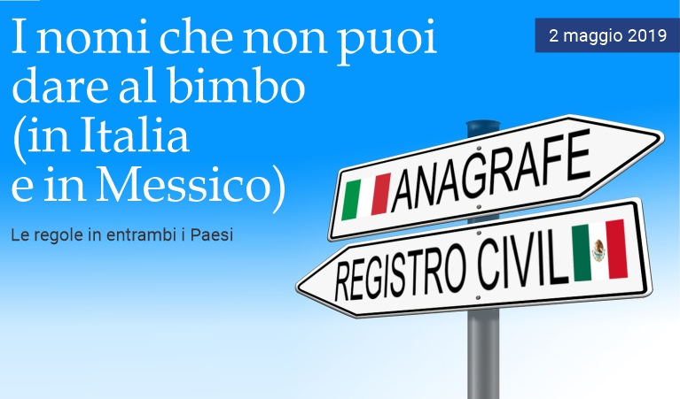 2 maggio 2019 - I nomi che si possono dare legalmente a un bambino dipendono da dove è venuto alla luce. Ecco le regole applicabili in Italia e in Messico. Italia Gli articoli 34 e 35 del Decreto del Presidente della Repubblica del 3 novembre del 2000, Nº 396, stabiliscono che a ogni bambino spetti un nome maschile, e a ogni bambina un nome femminile: non si può chiamare un bambino Francesca o una bambina Carlo. Nel corso degli anni la situazione è cambiata, anche in seguito alla compenetrazione di culture diverse, in base alle quali alcuni nomi sono neutri, per cui il confine non è più così netto. Per quanto riguarda la distinzione tra nomi maschili e femminili ci si riferisce, comunque, sempre a nomi italiani, perché per quelli stranieri il discorso è diverso. Un classico esempio è Andrea che, se dato come nome in spagnolo, va bene anche per una bambina, perché in questa lingua è femminile. L'articolo 34 segnala, inoltre, che il nome «può essere composto da uno o da più elementi [...], anche separati, non superiori a tre». La circolare Miacel n. 9 diffusa dal Ministero dell'Interno l'11 luglio 2001 permette l'attribuzione a persone di sesso maschile del nome Maria come secondo o terzo nome (Francesco Maria, Carlo Francesco Maria, Gianmaria, ecc.). Per quanto riguarda i nomi vietati in Italia, le regole sono le seguenti: Non si può dare al figlio il nome del papà o della mamma viventi —neanche seguiti dalla parola “junior”— né del fratello o della sorella viventi. Sono proibiti, inoltre, nomi ridicoli o vergognosi. Se questi concetti dovessero essere considerati soggettivi dai genitori, il caso andrebbe valutato seguendo l'iter giudiziario descritto nell'ultimo paragrafo di questa sezione. Sono banditi anche i nomi interi di personaggi storici, in particolare Adolf Hitler, Joseph Vissarionovich Stalin e simili. Non si possono dare a bambini con cittadinanza italiana nomi stranieri in un alfabeto diverso da quello utilizzato in Italia (ad esempio, cirillico o cinese). Ogni volta che sorge un dubbio su un nome, l’ufficiale dell’anagrafe deve fare una segnalazione al Procuratore della Repubblica, non prima di aver fatto presente ai genitori che potrebbero commettere un errore insistendo con la loro scelta. Se i genitori non cambiano idea, l’ufficiale procede e trasmette gli atti alla Procura, che ha facoltà di depositare un ricorso al Tribunale Civile. Il giudice deciderà se il nome può essere accettato. Messico Sebbene ciascuna delle 32 entità federali degli Stati Uniti messicani abbia il proprio codice civile, quasi tutte stabiliscono che il funzionario dell'anagrafe esorterà chiunque presenti il bambino, affinché il nome con cui si vuole registrare non sia peggiorativo, diffamatorio, degradante, privo di significato o che si tratti di un segno, simbolo o acronimo, o che esponga l'interessato al ridicolo. Non ci sono restrizioni per quanto riguarda l'uso del nome del padre o della madre, dal momento che in Messico per identificare ogni persona viene utilizzato il nome seguito dal cognome paterno e da quello materno. Non abbiamo trovato indicazioni riguardanti l'uso di nomi maschili per i bambini e femminili per le bambine. A questo proposito vale la pena ricordare che ci sono alcuni nomi usati in Messico il cui genere non è definito, come ad esempio Guadalupe. Nello Stato di Sonora è stata approvata una legge in cui 61 nomi sono esplicitamente vietati. Alcuni altri Stati hanno legislazioni simili che non includono, però, un elenco di nomi. I funzionari degli uffici del Registro Civile dello Stato di Sonora non possono, inoltre, iscrivere bambini con più di due nomi e devono evitare combinazioni con il cognome che potrebbero essere considerate confuse, come Michael Jackson Ramírez. Di seguito l'elenco completo dei nomi vietati nello Stato di Sonora: Aceituno, Aguinaldo, All Power, Anivdelarev, Batman, Benefecia, Burger King, Cacerolo, Calzón, Caraciola, Caralampio, Cesárea, Cheyenne, Christmas Day, Circunsición, Culebro, Delgadina, Diodoro, Email, Escroto, Espinacia, Facebook, Fulanito, Gordonia, Gorgonio, Harry Potter, Hermoine, Hitler, Hurraca, Iluminada, Indio, James Bond, Lady Di, Marciana, Masiosare, Micheline, Panuncio, Patrocinio, Petronilo, Piritipio, Pocahontas, Pomponio, Privado, Procopio, Rambo, Robocop, Rocky, Rolling Stone, Sobeida, Sol de Sonora, Sonora Querida, Telésforo, Terminator, Tránsito, Tremebundo, Twitter, Usnavy, Verulo, Virgen, Yahoo, Zoila Rosa. (massimo barzizza / puntodincontro.mx)
