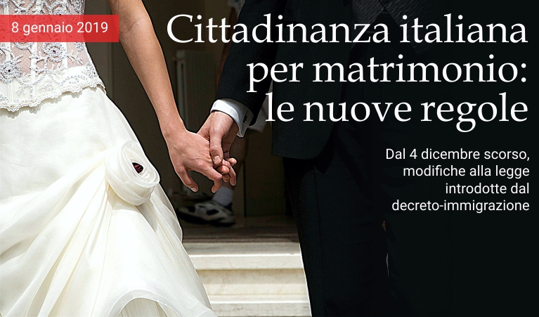 8 gennaio 2019 - Sono entrate in vigore il 4 dicembre scorso le modifiche alla legge di cittadinanza introdotte dal cosiddetto decreto-immigrazione (DL 4 ottobre 2018, n. 132, convertito in legge 1° dicembre 2018, n. 138). Le varianti riguardano la cittadinanza per matrimonio, la cui concessione viene subordinata ora anche al possesso, da parte dell'interessato, di un'adeguata conoscenza della lingua italiana, non inferiore al livello B1 del Quadro comune europeo di riferimento per la conoscenza delle lingue (QCER). Il livello B1 —intermedio o di soglia— viene descritto come segue: «[L'interessato] è in grado di comprendere i punti essenziali di messaggi chiari in lingua standard su argomenti familiari che affronta normalmente al lavoro, a scuola, nel tempo libero ecc. Riesce ad affrontare situazioni che si possono presentare viaggiando in una regione dove si parla la lingua in questione. Sa produrre testi semplici e coerenti su argomenti che gli siano familiari o siano di suo interesse. È in grado di descrivere esperienze e avvenimenti, sogni, speranze, ambizioni, di esporre brevemente ragioni e dare spiegazioni su opinioni e progetti». Chi richiede la cittadinanza per matrimonio, dunque, all’atto della presentazione dell’istanza dovrà anche essere in possesso di un titolo di studio rilasciato da un istituto di istruzione pubblico o paritario o esibire un attestato rilasciato da un ente certificatore. Al momento sono considerati enti certificatori la Società Dante Alighieri, l’Università per stranieri di Siena, l’Università per stranieri di Perugia e l’Università Roma Tre. In base alla nuova legge il costo della pratica sale da 200 a 250 euro. (massimo barzizza / puntodincontro.mx)