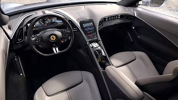Las líneas son muy limpias, de una elegancia no común incluso entre los coches del Cavallino. Es notable el desarrollo del espacio interior, marcado por dos curvas que separan claramente los espacios dedicados al conductor y al pasajero. En la parte superior del túnel central se encuentra una inédita pantalla táctil vertical a través de la cual se controla el clima y el radio. El tablero de instrumentos es completamente digital y los lugares son “2 + 2”, lo que significa dos asientos delanteros más dos plegables en la parte posterior.
