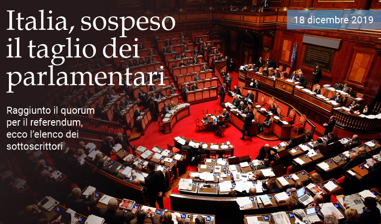 18 dicembre 2019 - È stato raggiunto il quorum dei senatori (un quinto del totale) necessario ad avviare il referendum sul taglio dei parlamentari. Le sottoscrizioni, custodite in un ufficio di Palazzo Madama, dovrebbero essere trasmesse nelle prossime ore in Cassazione, per cui, salvo colpi di scena, si blocca l'iter per l'entrata in vigore della legge. Ecco l'elenco dei 64 firmatari: