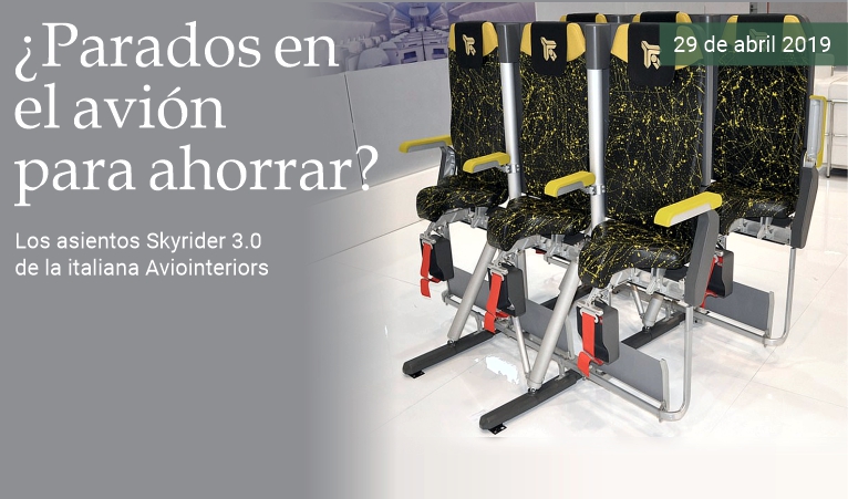 29 de abril de 2019 - Han sido tema de discusión durante años y tal parece que los vuelos comerciales con pasajeros parados son vez más probables. Lo confirma el fabricante italiano Aviointeriors —que lleva más de 40 años produciendo interiores de cabina y asientos para aeronaves— con su modelo Skyrider 3.0, que exhibió hace algunos días en la Aircraft Interiors Expo 2019 de Hamburgo. La nueva variante no cambia mucho en comparación con la que presentó la compañía napolitana el año pasado: se modificó la textura de la tela y se agregaron pequeños reposabrazos divisorios, pero no cambia la estrechez del asiento, donde necesariamente tendrán que descansar los glúteos durante el viaje. Además, se eliminó el poste de anclaje de los asientos: Aviointeriors encontró la forma de que toda la estructura sea más ligera y segura. Aún no se respetan, sin embargo, las regulaciones actuales: algunos de los aviones más utilizados como el A320, A321, A380 y 737 no permiten la instalación de asientos a una distancia inferior a las 28 pulgadas (con el Skyrider 3.0, el espacio no excede las 23"). Ninguna compañía de bajo costo ha adoptado aún una solución similar, pero para distancias cortas podría abrirse una nueva clase económica (ultra básica), con precios más bajos que los actuales, dado que los 58.4 cm de espacio ocupado permitirían agregar más pasajeros en los vuelos. Además, faltan pruebas que tomen en cuenta para los usuarios el estrés del despegue, del aterrizaje y de las turbulencias y no se anticipa que se lleven a cabo en el corto plazo, dado que se trata de prototipos para interiores aún no integrados en ningún avión y que no han sido ordenados por ninguna compañía. (massimo barzizza / puntodincontro.mx)
