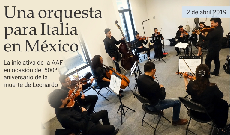 2 de abril de 2019 - La Academia de Arte de Florencia celebra los 500 años de la muerte de Leonardo da Vinci con un proyecto capaz de dejar huellas en el tiempo. Sin duda, crear una orquesta de cámara que represente a Italia y que lleve el nombre de uno de los artistas y científicos más amados y reconocidos en el mundo es una idea no sólo original, sino de gran relevancia para su potencial impacto sobre el “Sistema Italia”, el conjunto de las instituciones, asociaciones y empresas del país de la bota presentes en México. «Tener una orquesta de cámara en la Academia de Arte de Florencia (AAF) es un objetivo muy importante para una institución como la nuestra que quiere ofrecer valor agregado al acervo cultural de México, desde los puntos de vista de la formación y de la producción artística», dijo el rector y presidente de la AAF, Fabio Caselli. «Estamos viendo» —continuó— «interés por parte de varias empresas italianas para el patrocinio. Esto nos permitiría lograr crecer en el tiempo y participar en eventos importantes donde se requiera la presencia de nuestro país». El director principal de la orquesta es el maestro Aarón Jiménez, violinista reconocido como uno de los músicos más completos en tierra azteca, ya que además de contar con una sólida preparación en el ámbito clásico, es uno de los principales exponentes de la música folklórica de México. El repertorio que la orquesta Leonardo Da Vinci se propone desarrollar incluye composiciones de Mozart, Beethoven y Vivaldi, así como piezas de música pop internacional y de la tradición mexicana. El primer concierto de presentación se llevará a cabo el viernes 5 de abril a las 17:00 hrs. en la sede del Instituto Italiano de Cultura de la Ciudad de México, Francisco Sosa 77, Coyoacán. La entrada será libre.