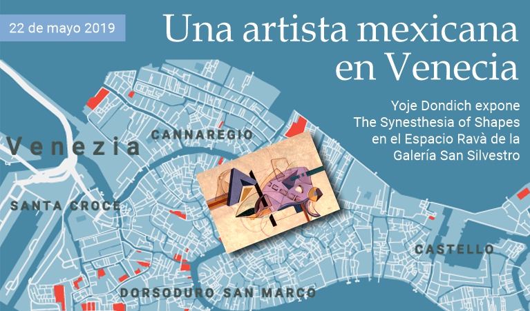 22 de mayo de 2019 - La exposición The Synesthesia of Shapes, del artista mexicana Yoje Dondich, podrá ser visitada hasta el 17 de julio en el Espacio Ravà de la Galería San Silvestro en Venecia. Tras el éxito en el palacio Giureconsulti de Milán, la muestra fue incluida en el programa de eventos colaterales de la 58ª Exposición Internacional de Arte de la Bienal. Una selección de 14 obras es la base para el análisis de las diversas exploraciones formales desarrolladas por Dondich a través de la pintura. The Synesthesia of Shapes ofrece experiencias en las que el espectador utiliza los sentidos para materializar la sensibilidad, en perfecta armonía con el tema central de la Bienal propuesto por el curador Ralph Rugoff: May You Live in Interesting Times. Yoje Dondich (Ciudad de México, 1952) estudió psicología, diseño, logoterapia y diseño de interiores. Realizó su formación plástica con de la talla de Rolando Belfai, Isaac Stavans y Manuel Guillén. En sus inicios utilizó el dibujo para crear obras de fuerte tendencia hacia el surrealismo, que luego materializó también en pinturas al óleo. Recientemente, sin embargo, su estilo ha dado un giro radical hacia el campo de la abstracción con creaciones que corresponden a un momento de búsqueda formal y cromática, donde el color, la línea y el trazo son los principales protagonistas. The Synesthesia of Shapes, presentada por Must Wanted Group, es una iniciativa apoyada por la Embajada de México en Italia, el Consulado de México en Milán y el Instituto Nacional de Bellas Artes y Literatura.
