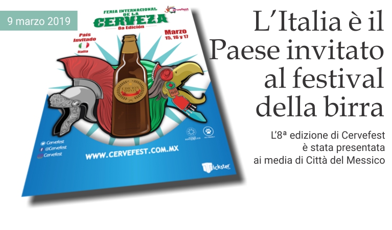 9 marzo 2019 - Mercoledì 6 marzo ha avuto luogo, nell'aula magna dell'Istituto Italiano di Cultura di Coyoacán (IIC), la presentazione dell'8ª edizione del Festival Internacional de la Cerveza (Cervefest) di Città del Messico, evento dedicato alla birra in cui, quest'anno, l'Italia sarà il Paese ospite d'onore. Mazatlán, capitale dello Stato nordoccidentale di Sinaloa, parteciperà come città invitata.