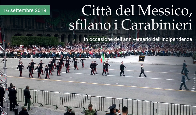 16 settembre 2019 - Il plotone di 24 carabinieri invitati dal Ministero messicano della Difesa Nazionale ha partecipato oggi alla parata militare del Giorno dell'Indipendenza nella capitale del Paese latinoamericano. Per la prima volta durante il suo mandato, il presidente della Repubblica López Obrador ha presieduto l'evento come comandante in capo delle forze armate, in commemorazione del 209° anniversario del grito de Dolores, atto che secondo la tradizione diede inizio alla guerra di indipendenza. Per un'ora e 40 minuti, hanno percorso le strade di Plaza de la Constitución 13 mila 111 partecipanti, con 55 bandiere messicane e 6 straniere (Italia, Argentina, Cile, Polonia, Portogallo e Spagna).