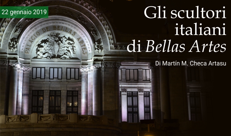 22 gennaio 2019 - Il Palazzo delle Belle Arti di Città del Messico è adornato dalle opere di diversi scultori italiani, alcuni dei quali di notevole importanza. I loro lavori portarono in questo Paese latinoamericano campioni dell'arte che si stava sviluppando in Italia tra il XIX e il XX secolo. I paragrafi seguenti cercheranno di presentarli brevemente. In un primo momento, l'architetto Adamo Boari, responsabile del progetto, aveva pensato di assumere artisti del livello di Auguste Rodin, il casalese Leonardo Bistolfi e Paolo Troubetskoy. Finì poi per scegliere, probabilmente per ragioni economiche e di disponibilità, assieme a Bistolfi, gli italiani Edoardo Rubino e Domenico Boni, lo spagnolo Agustín Querol e l'ungherese Géza Maróti. Per la realizzazione degli abbellimenti scultorei, Boari stesso ingaggiò, inoltre, Fiorenzo Gianetti, che lavorò stipendiato dal 1907 al 1919 nei cantieri del Palazzo ed è l'autore delle ghirlande, chiavi e maschere che ne decorano la facciata. I cancelli perimetrali e le cancellate furono affidati ad Alessandro Mazzucotelli. È noto che Leonardo Bistolfi (1859-1933) —rinomato scultore piemontese, massimo rappresentante del simbolismo in Italia, formatosi all'Accademia di Brera a Milano e all'Albertina di Torino— inviò dall'Italia il suo gruppo scultoreo L'armonia per la facciata del palazzo, con un costo di 96.640 pesos di quell'epoca. L'opera, secondo la stampa, fu molto apprezzata dal re d’Italia Vittorio Emanuele III quando visitò lo studio dello scultore a Torino nell'ottobre del 1908. Qualche mese prima, in aprile, era stato firmato il contratto tra il governo messicano e Walton, Goody and Cripps Ltd., società commerciante di marmo di Carrara, che prevedeva la fornitura di 4.000 tonnellate di questo materiale per i lavori. Una parte venne consegnata a Bistolfi. Non si sa per certo se Bistolfi abbia mai visitato il Messico. È confermato, tuttavia, che il mausoleo della famiglia Crovetto, nel Cimitero centrale di Montevideo, e il gruppo scultoreo del Palacio de Bellas Artes sono le uniche opere dell'artista di Casale Monferrato in America Latina. Bistolfi fu anche inizialmente coinvolto nel processo che portò alla realizzazione della statua di Giuseppe Garibaldi, che oggi si trova in Avenida Chapultepec a Città del Messico. Nel luglio del 1910, alcuni membri della colonia italiana della capitale messicana chiesero allo scultore di produrre una copia della statua dell'eroe dei due mondi da lui consegnata al comune di Sanremo per portarla in Messico. Bistolfi rifiutò la proposta, il che costrinse i coloni ad aprire una sottoscrizione di donazioni per trovare un'altra soluzione. Fu, infine, lo scultore César Augusto Volpi, residente in città, a portare a termine la commissione, elaborando un busto del patriota risorgimentale. La prima pietra del monumento fu posta il 20 settembre 1910 nella piazza Orizaba del quartiere Roma.