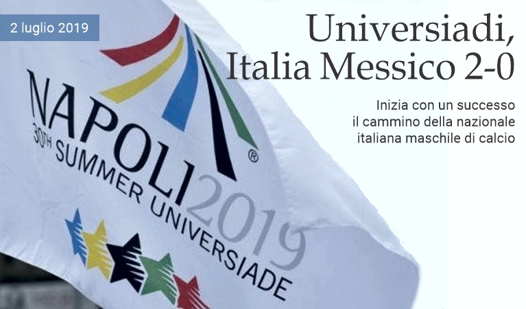 2 luglio 2019 - Inizia con un successo il cammino della Nazionale italiana maschile di calcio all'Universiade Napoli 2019. Gli azzurri superano 2-0 il Messico allo stadio Arechi di Salerno, grazie alle reti di Ungaro e Serena. La squadra di Daniele Arrigoni, dopo un inizio un po' contratto, si afferma alla distanza, segnando nella ripresa al 55º e 93º minuto. (massimo barzizza / puntodincontro.mx)