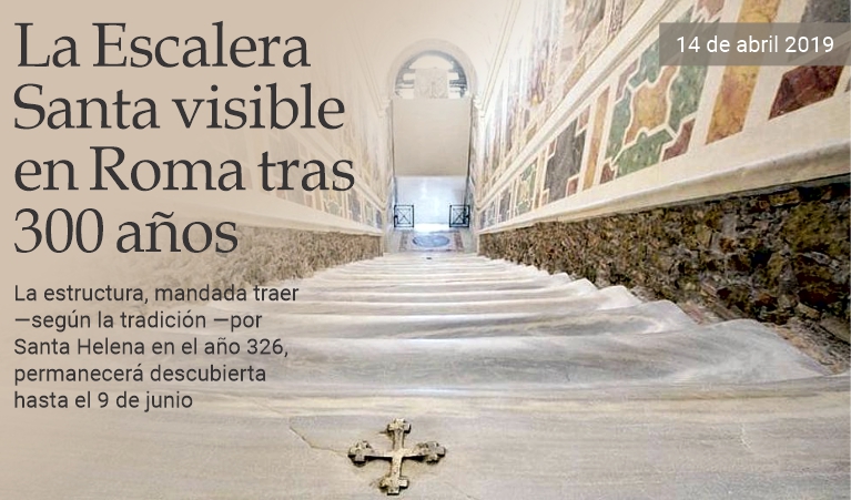 14 de abril de 2019 - Hay 28 escalones de mármol que conectan Roma con Jerusalén. Pertenecen a la Escalera Santa, el «santuario de la Pasión de Cristo». Según la tradición, Jesús subió sus peldaños hacia el palacio de Poncio Pilato el día en que fue condenado a muerte. Después de 300 años, desde el pasado 11 de abril, en el complejo monumental de la Plaza de San Juan de Letrán es visible al público en su estado original, sin la protección de madera que mandó poner el Papa Inocencio XIII en 1723. Estuvo cerrada por obras de restauración desde el verano pasado y quedará extraordinariamente descubierta durante 60 días, hasta el 9 de junio. La tradición indica que Jesús subió por la escalera después de haber sido azotado, por lo que habría perdido sangre que se dice se conserva en tres de sus escalones. La emperatriz Santa Elena, madre de Constantino, habría ordenado que fuese transportada a Roma en el año 326. Estaba ubicada en el Patriarchium, la antigua sede de los Papas, hasta que Sixto V hizo que fuese movida en 1589. El santuario de Domenico Fontana, cuya construcción fue ordenada por el mismo Papa, también contiene el Sancta Santorum, la capilla rica en reliquias que durante siglos fue el oratorio privado de los pontífices. Inocencio XIII cubrió la Escalera para protegerla del flujo de peregrinos que la han recorrido durante siglos. De rodillas, siempre han subido así los 28 escalones, en signo de devoción y veneración de la Pasión de Jesús, para expiar las culpas e invocar las gracias. Como sucedió el día de la reapertura con el cardenal Angelo De Donatis. Bajo la dirección de los Museos Vaticanos, los restauradores sacaron a la luz el antiguo mármol, recogiendo bajo la cubierta de madera una multitud de notas manuscritas, ex votos, monedas y fotos dejadas por los fieles y ahora conservadas por los Padres Pasionistas, que han custodiado el Santuario desde 1853, según la voluntad de Pío IX. Después de este momentáneo regreso a la versión original, en junio se volverá a colocar la cobertura de tablones de nogal sobre la Escalera. (domenico agasso jr / puntodincontro.mx / adaptación y traducción al español de massimo barzizza)