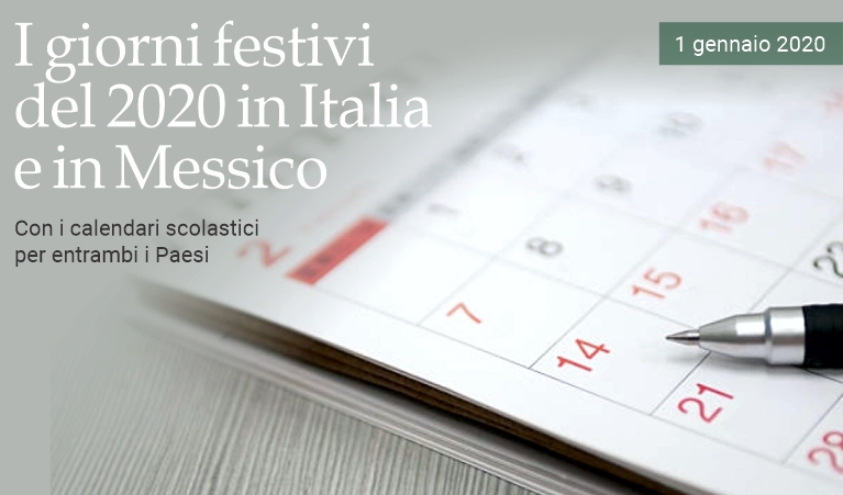 1 gennaio 2020 - Ecco l'elenco dei giorni festivi del 2020 in Italia e in Messico. Per l'Italia sono state considerate esclusivamente le festività legalmente riconsciute a livello nazionale, mentre per il Messico la tabella comprende sia le date ufficiali, sia quelle in cui le istituzioni finanziarie rimarranno chiuse, queste ultime segnalate da un asterisco.
