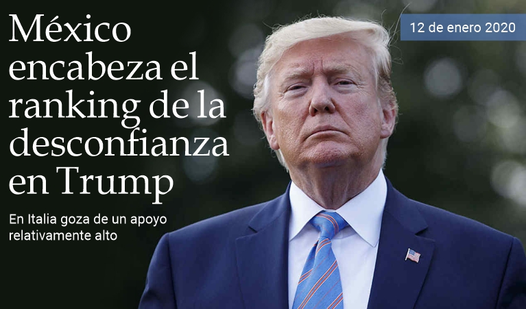 12 de enero de 2019 - Como ha sucedido desde el comienzo de su mandato cuatrienal, el presidente de los Estados Unidos, Donald Trump, continúa recibiendo críticas negativas en todo el mundo. En los 32 países donde el Pew Research Center (PRC) realizó encuestas, un promedio del 64% dice que no cree que el ex productor y conductor de The Apprentice pueda tomar las decisiones correctas en el ámbito de la política mundial y solo el 29% lo respalda. Los sentimientos anti-Trump son particularmente comunes en Europa occidental: aproximadamente tres de cada cuatro personas no confían en el mandatario estadounidense en Alemania, Suecia, Francia, España y los Países Bajos. México ocupa el primer lugar en el ranking mundial de la desconfianza: el 89% de los encuestados en el país latinoamericano expresan serias dudas sobre el titular del poder ejecutivo en los Estados Unidos. En Italia la confianza hacia él es relativamente alta (32%) comparada con la mayoría de las naciones del Viejo Continente.