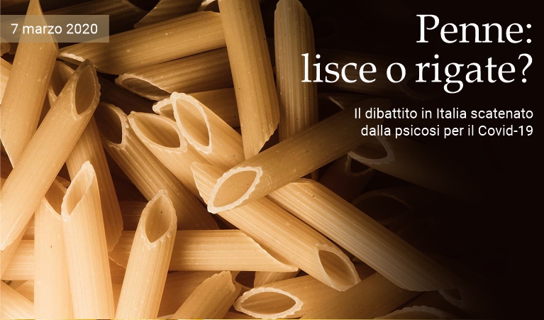 7 marzo 2020 (ore 16:14) - La psicosi provocata dall'epidemia di Covid-19 ha portato molti abitanti dell'Italia settentrionale a svuotare gli scaffali dei supermercati facendo incetta di pasta e, tra i formati in vendita, le penne lisce sono state disprezzate, rimanendo spesso sui banconi. La vicenda ha provocato un vivace dibattito tra i sostenitori e i critici di questa forma storica nell'ambito delle numerosissime varietà di uno dei prodotti alimentari italiani più conosciuti. Ma, prima di riferirci ai dettagli della discussione, rivediamo brevemente alcuni dati storici. Al contrario di molti tipi di pasta, le cui origini si perdono nel mito, le penne —superate solo dagli spaghetti in termini di apprezzamento a livello mondiale— hanno una precisa data di nascita e la loro paternità non è contesa. L’11 marzo del 1865 il genovese Giovanni Battista Capurro depositò il brevetto di una macchina per tagliare la pasta diagonalmente. Secondo alcune versioni, il nuovo formato voleva riprodurre i pennini delle penne stilografiche —brevettate 38 anni prima dal governo francese—, da cui il nome. Nel documento del brevetto, conservato all’Archivio Centrale dello Stato a Roma, si legge: «Fino al giorno d’oggi non si poteva ottenere il taglio diagonale che colle forbici a mano, metodo che, oltre a riuscire troppo lento e dispendioso, presentava l’inconveniente di produrre un taglio irregolare e di schiacciare le paste». Le penne ebbero subito successo e si diffusero rapidamente dalla Liguria in tutto lo Stivale, dove si oggi contano diverse varianti. Cambia la lunghezza, lo spessore, il diametro, la porosità, ma il taglio obliquo resta sempre lo stesso.