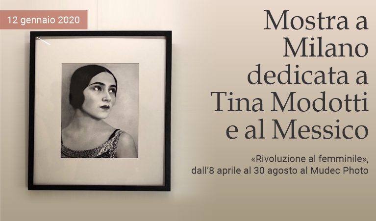12 gennaio 2020 - Saranno tante le donne che coloreranno con il loro talento il mondo dell'arte e della cultura nel 2020 e, in questo contesto, Mudec Photo —lo spazio espositivo del Museo delle Culture di Milano dedicato alla fotografia d’autore inaugurato poco più di un anno fa— ospiterà dall'8 aprile al 30 agosto la mostra Tina Modotti e il Messico. Rivoluzione al femminile. A cura di Biba Giacchetti, l'appassionante racconto per immagini ruoterà attorno alla militanza politica, la passione civile e l'impegno sociale in America Latina dell'artista udinese e di altre protagoniste dell'avanguardia femminile messicana nella prima metà del '900. La Modotti è considerata una delle più grandi fotografe dell'inizio del XX secolo, nonché una figura importante e controversa della vita politica messicana post-rivoluzionaria. Trasferitasi nel Paese latinoamericano nel 1923, strinse amicizia con artisti come Antonieta Rivas Mercado, Diego Rivera, David Alfaro Siqueiros, José Clemente Orozco, Blanca Luz Brum, Nahui Ollin, María “Tereza” Montoya e Frida Kahlo. Collaborò con il Partito comunista messicano, sostenne attivamente la lotta di Augusto César Sandino e aiutò a fondare il primo comitato antifascista italiano. Fu espulsa dal Messico nel 1930, ma vi tornò nel 1939 sotto falso nome. Secondo alcuni storici, fu implicata, assieme al suo amante Vittorio Vidali (alias Carlos Contreros), nell'assassinio di Leon Trotsky, avvenuto a Coyoacán il 20 agosto 1940. Tina morì a Città del Messico il 5 gennaio del 1942, colpita da un infarto in un taxi che la stava riportando a casa dopo aver cenato con amici, e la sua tomba si trova oggi nel Panteón de Dolores della stessa metropoli.