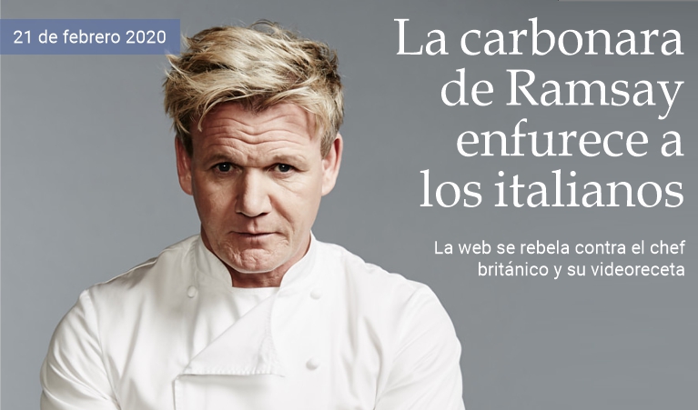 21 de febrero de 2020 (17:48 hrs.) - La videoreceta de pasta a la carbonara publicada el miércoles pasado en el perfil de Twitter y en la página oficial de Facebook del chef Gordon Ramsay provocó comentarios de rebelión de parte de varios italianos en las redes sociales. «Muy diferente, al menos aparentemente, de la verdadera pasta carbonara que se sirve en los restaurantes de Roma y en el Lacio, la de Ramsay parece ser un primer plato sazonado con una salsa muy (demasiado) líquida de yemas de huevo que ni siquiera fueron previamente amalgamadas con el pecorino», escribe hoy Laura Mari en La Repubblica, antes de comenzar a enumerar las duras críticas de los seguidores del juez televisivo de muchos aspirantes a cocinero.