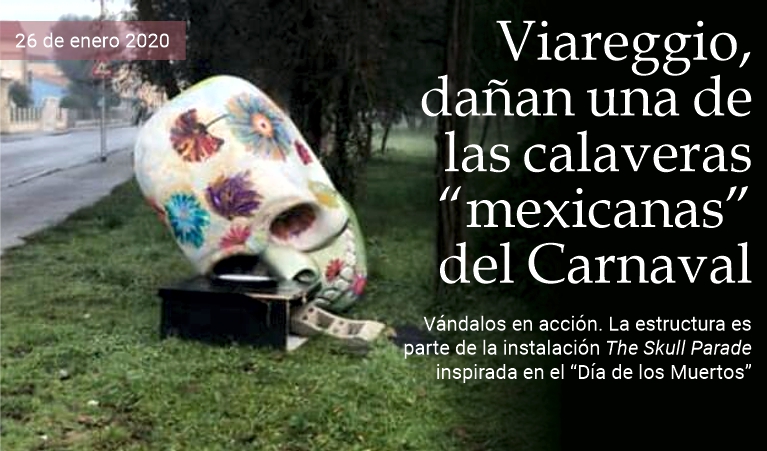 26 de enero de 2019 - Vándalos en acción en Viareggio contra una de las instalaciones del Carnaval dedicada al hermanamiento con la Ciudad de México e inspirada en el “Dia de los muertos”. Uno de los cráneos que se han colocado en la ciudad fue arrancado de su base y dañado. El comentario del alcalde, Giorgio Del Ghingaro, fue inmediato: «Debemos rebelarnos contra las personas malas, contra quienes calumnian, contra quienes dicen mentiras y siembran el odio en su triste camino. Quienes destruyen hieren a todos. Debemos rebelarnos regalando belleza, serenidad y esperanza». La instalación The Skull Parade nació de una colaboración entre la Fundación Carnaval de Viareggio, el Municipio de Viareggio y el Lu.C.C.A.—Centro de Arte Contemporáneo de Lucca— y fueron precisamente las celebraciones del “Dia de los muertos” las que estimularon la imaginación de los creadores del proyecto que, a su manera, quisieron utilizar el símbolo del cráneo como una guía narrativa, un elemento sobre el cual expresar pensamientos, estados de ánimo o simples cuentos decorativos que pueden transformarlo en una herramienta evocativa y comunicativa. En este contexto, diez artesanos-artistas y diez artistas internacionales se enfrentaron al arquetipo del cráneo: un volumen tridimensional de 165x120x180 cm, absolutamente blanco, listo para recibir las exhortaciones de cada creativo. El curador, Maurizio Vanni, además quiso sugerir una posible interpretación destacando los símbolos y las referencias esotéricas más utilizadas a lo largo de la historia del arte occidental: la vanidad y el paso del tiempo. Los “cráneos de autor” permanecerán expuestos en varios espacios de la ciudad de Viareggio durante la edición 2020 del Carnaval y hasta el 8 de marzo. (massimo barzizza / puntodincontro.mx)