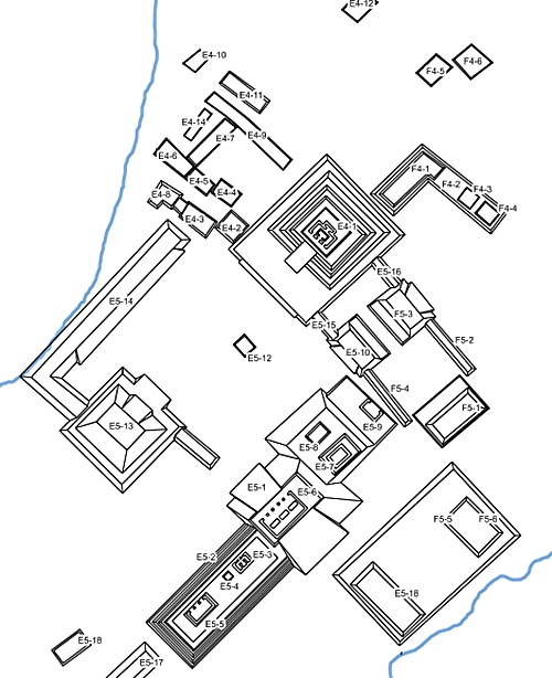 Unità architettoniche nella metà nord-orientale di Lacanjá Tzeltal Si cercavano prove dell'esistenza di Sak Tz’i’ dal 1994, dopo aver scoperto riferimenti a questo regno nelle iscrizioni trovate in altri siti di scavo. La città viene menzionata anche in alcune sculture esposte in musei di altri Paesi del mondo. Il regno di Sak Tz’i’ non era il più potente dei regni Maya, e le sue rovine sono più modeste rispetto ai siti archeologici più famosi, come Chichén Itzá e Palenque. I popolani vivevano in campagna, raccoglievano una grande varietà di colture e producevano ceramiche e strumenti di pietra. Golden e i suoi collaboratori hanno trovato tracce di quello che probabilmente era il mercato della città. All’estremità nord-est degli scavi sono state scoperte le rovine di una piramide alta circa 13,7 metri, tra le varie strutture circostanti che sarebbero residenze d’élite e centri di riti religiosi.