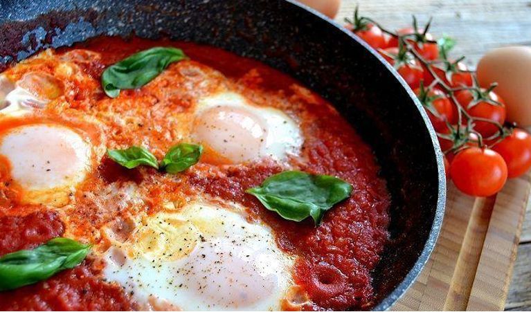 Preparazione Soffriggete la cipolla tritata nell'olio e nel burro; dopodiché unite i pomodori, sale, pepe e lasciate cuocere per 20 minuti. Quando questa salsa sarà densa, aggiungeteci le uova facendo attenzione a non romperle e salate. (massimo barzizza / puntodincontro.mx)